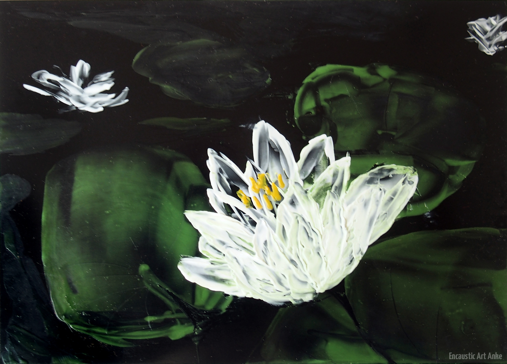 Wie bei der Schwarz-Weiß-Fotografie hat auch das Malen ohne weitere Farben seinen Reiz. Eine besondere Herausforderung ist auch das Malen auf schwarzem Encaustic-Papier