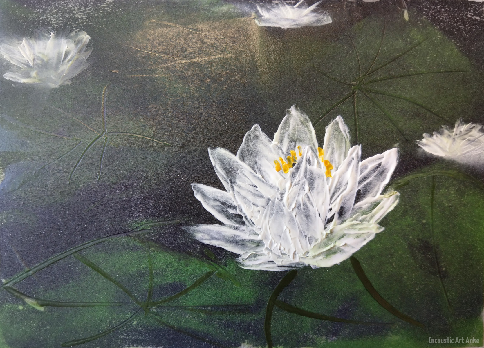 Wie bei der Schwarz-Weiß-Fotografie hat auch das Malen ohne weitere Farben seinen Reiz. Eine besondere Herausforderung ist auch das Malen auf schwarzem Encaustic-Papier