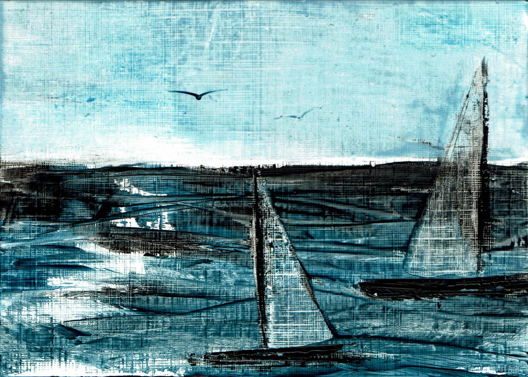 Acrylpapier-Segelboote-blau-schwarz-weiß-A6-10-2024