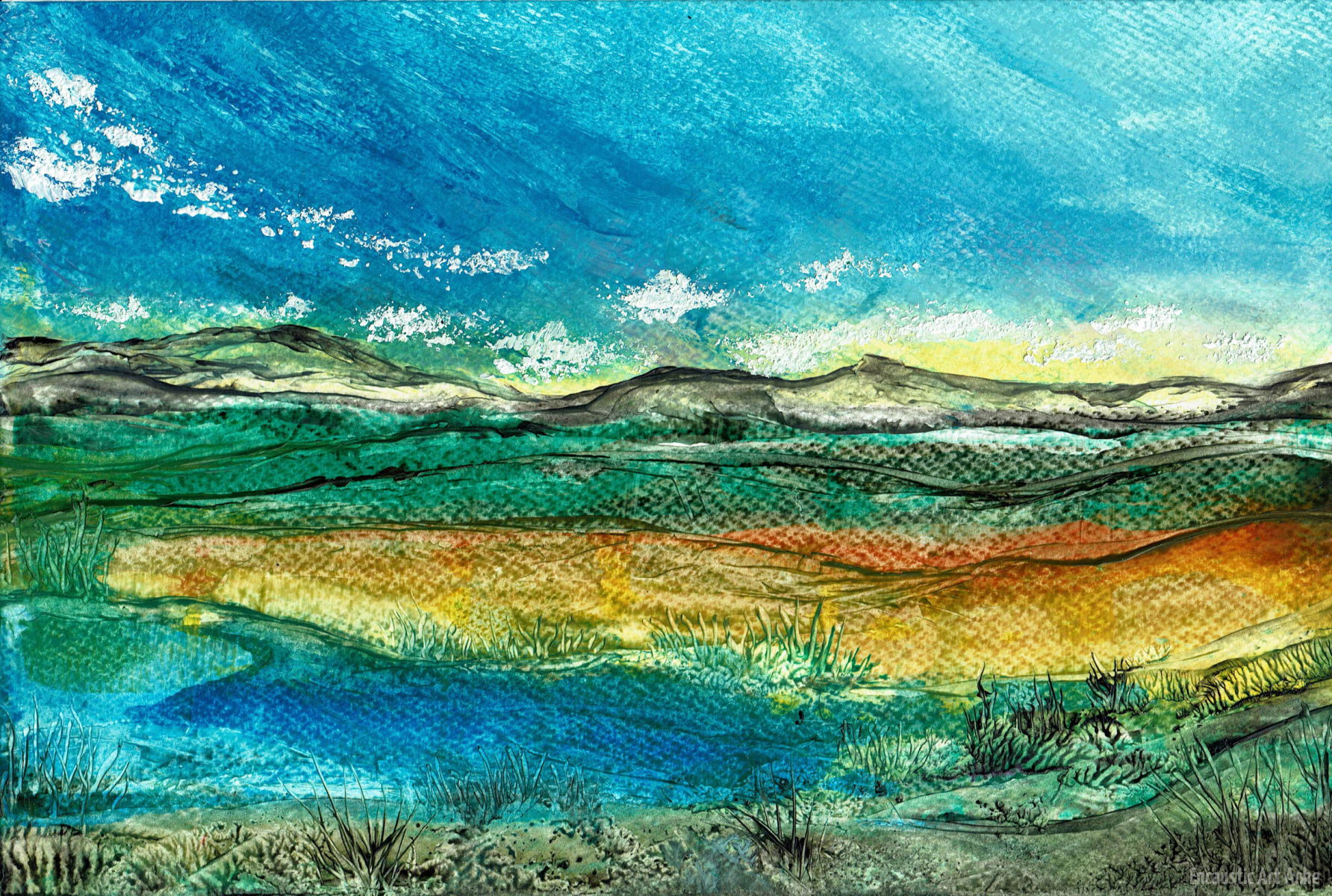 Verwendet man nicht das stark verdichtete Spezialpapier sondern Aquarell- oder sonstige Strukturpapiere, entstehen völlig andere Bilder. Es ist spannend zu erleben, wie sich das Wachs verhält. Welche Farben und in welcher Intensität direkt vom Papier aufgenommen werden und was noch veränderbar ist. Je nach dem wirkt ein so gestaltetes Gemälde auch einmal wie auf Leinwand gemalt.