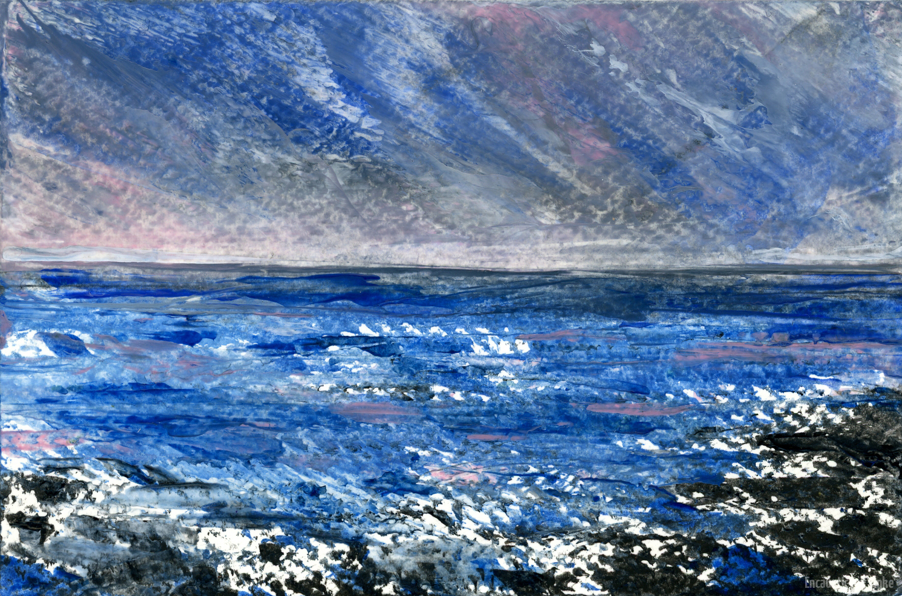 Verwendet man nicht das stark verdichtete Spezialpapier sondern Aquarell- oder sonstige Strukturpapiere, entstehen völlig andere Bilder. Es ist spannend zu erleben, wie sich das Wachs verhält. Welche Farben und in welcher Intensität direkt vom Papier aufgenommen werden und was noch veränderbar ist. Je nach dem wirkt ein so gestaltetes Gemälde auch einmal wie auf Leinwand gemalt.