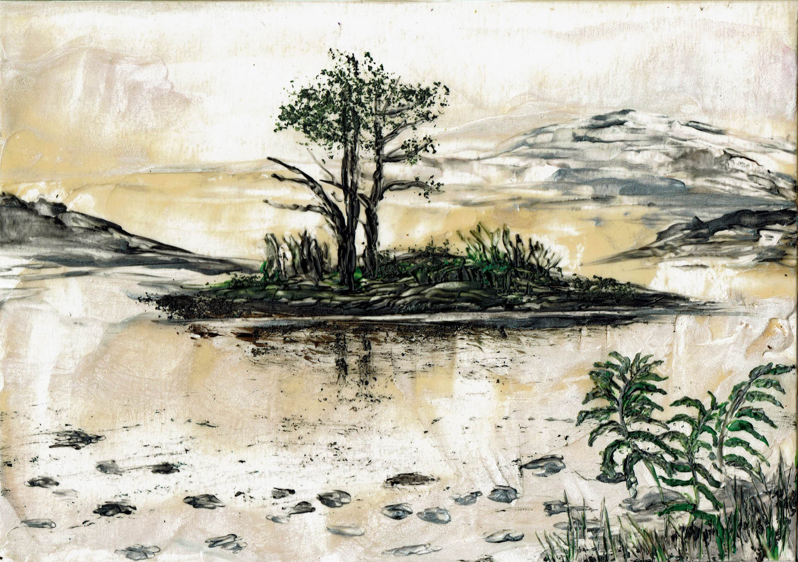 Ganz anders geht das Gestalten z. B. mit dem Maleisen auf einem festen Hintergrund. Auch verhalten sich die Farben wieder ganz anders. Sehr spannend…