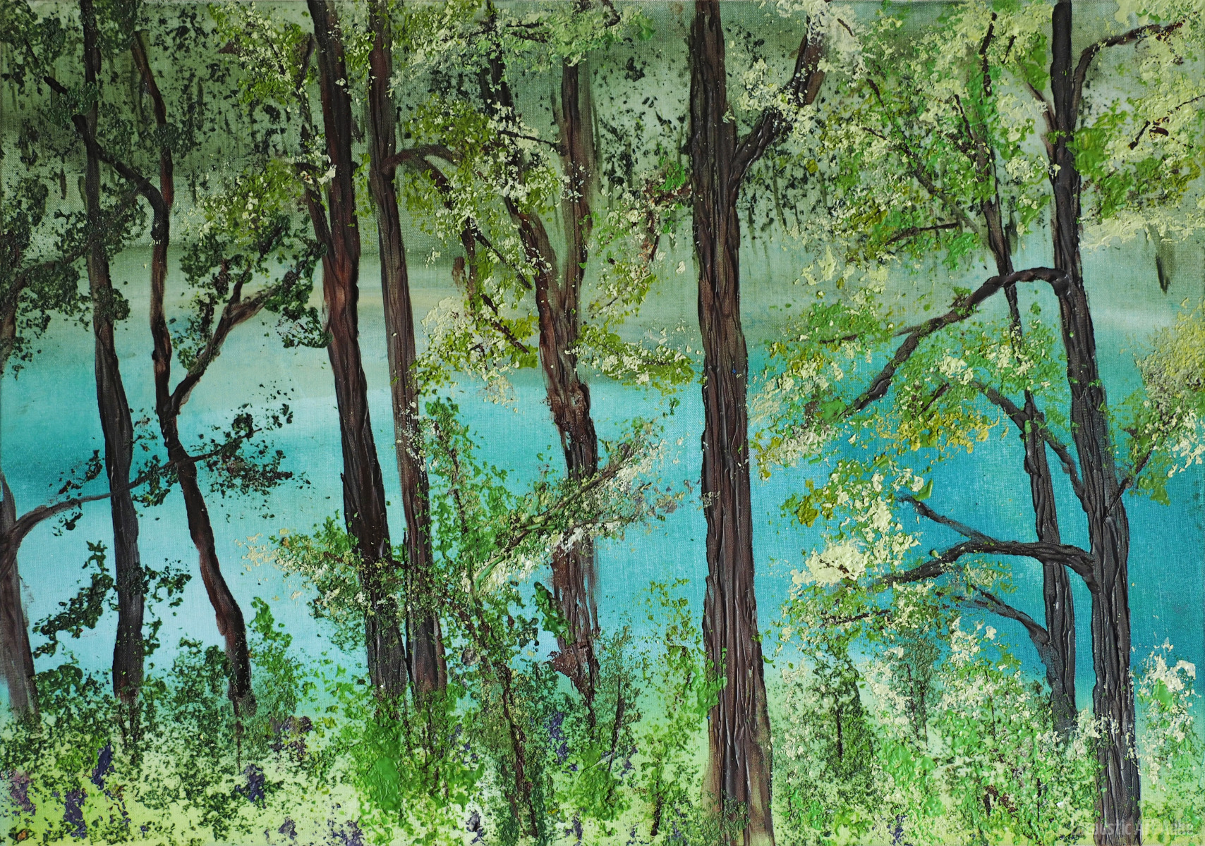 Unter Verwendung von Tissue (z. B. eine Lage einer Papierserviette) usw. lassen sich herrliche Hintergründe gestalten, indem nach einem allgemeinen Farbauftrag mit Klarwachs ein Stück hiervon „aufgeklebt“ wird. Es entstehen zarte, fließende Farbflächen, auf denen mit direktem Malen das weitere Bild gestaltet werden kann. Wird die Auflage geknüllt und wieder lose aufgezogen auf den Untergrund aufgebügelt, entstehen hierdurch interessante Effekte.