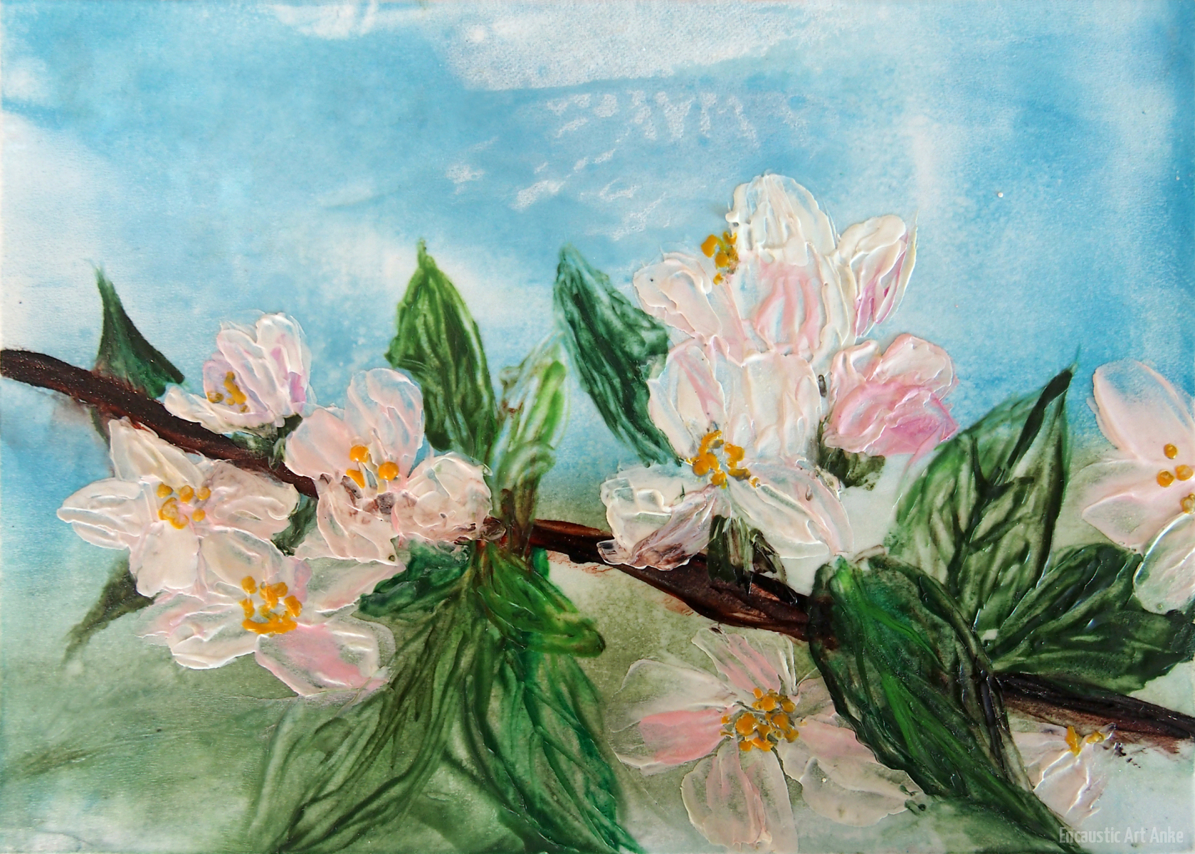 Unter Verwendung von Tissue (z. B. eine Lage einer Papierserviette) usw. lassen sich herrliche Hintergründe gestalten, indem nach einem allgemeinen Farbauftrag mit Klarwachs ein Stück hiervon „aufgeklebt“ wird. Es entstehen zarte, fließende Farbflächen, auf denen mit direktem Malen das weitere Bild gestaltet werden kann. Wird die Auflage geknüllt und wieder lose aufgezogen auf den Untergrund aufgebügelt, entstehen hierdurch interessante Effekte.